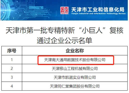 8月8日,工信部公佈天津市第一批專精特新“小巨人”複核通過企業名單。GBASE南大通用作為首批入選的國家級專精特新企業成功通過複核。