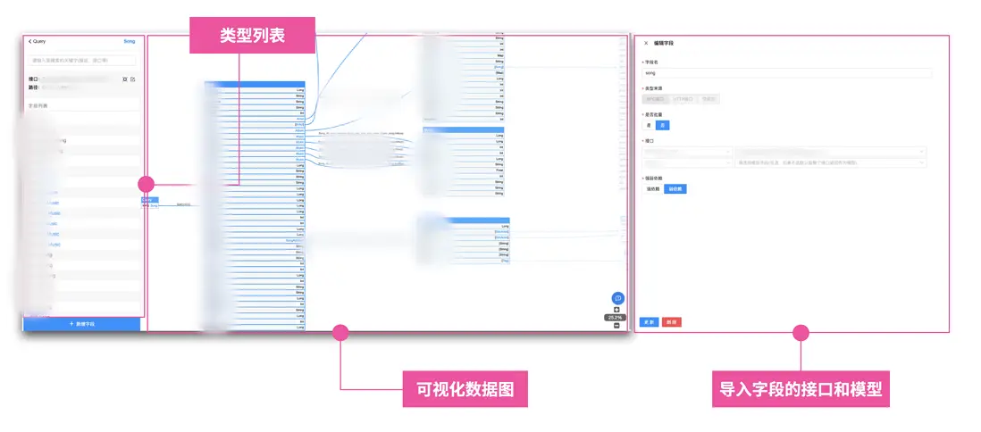 在數據圖的展示上,我們直接採用了 graphql-voyager 這個開源庫,通過一些擴展讓其具備了字段編輯能力,字段搜索等開發過程中經常要用到的一些能力。