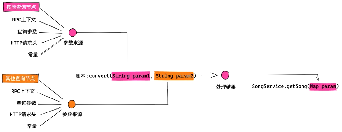 @param 指令主要在執行查詢操作之前運行,負責收集參數來源,並將多個參數來源傳入腳本進行處理,最終將處理結果傳遞到 RPC 參數中,它的執行流程如下圖所示: