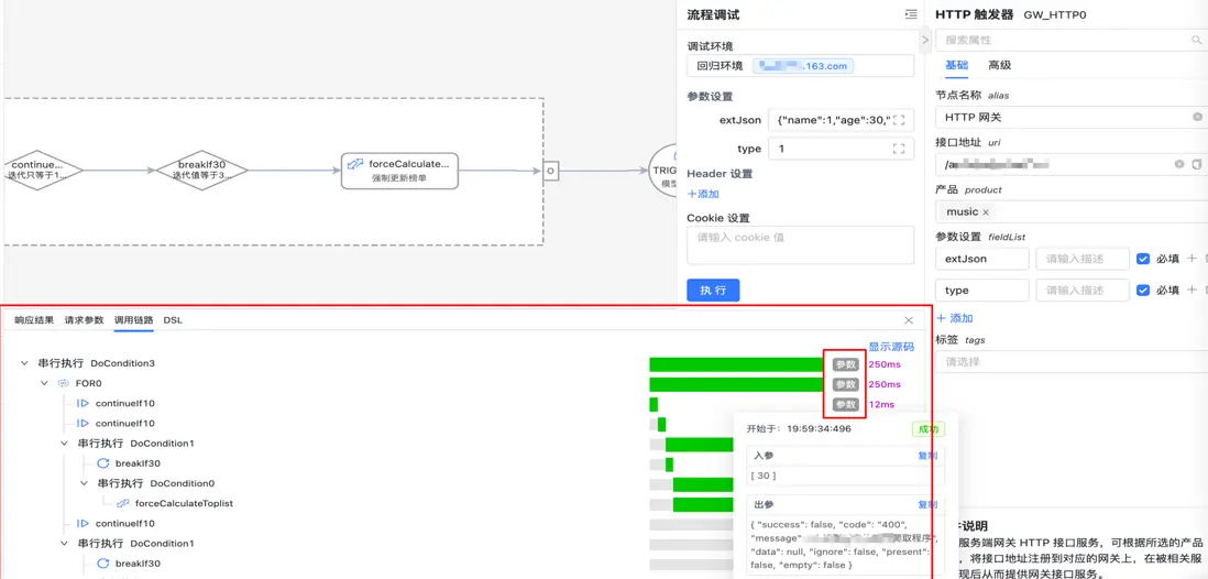 3、可視化調試記錄: 入參、結果、調試記錄棧、運行DSL