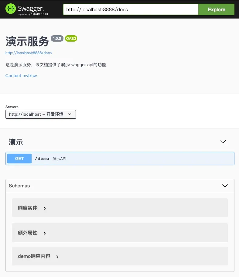 * description="這是演示服務,該文檔提供了演示swagger api的功能",