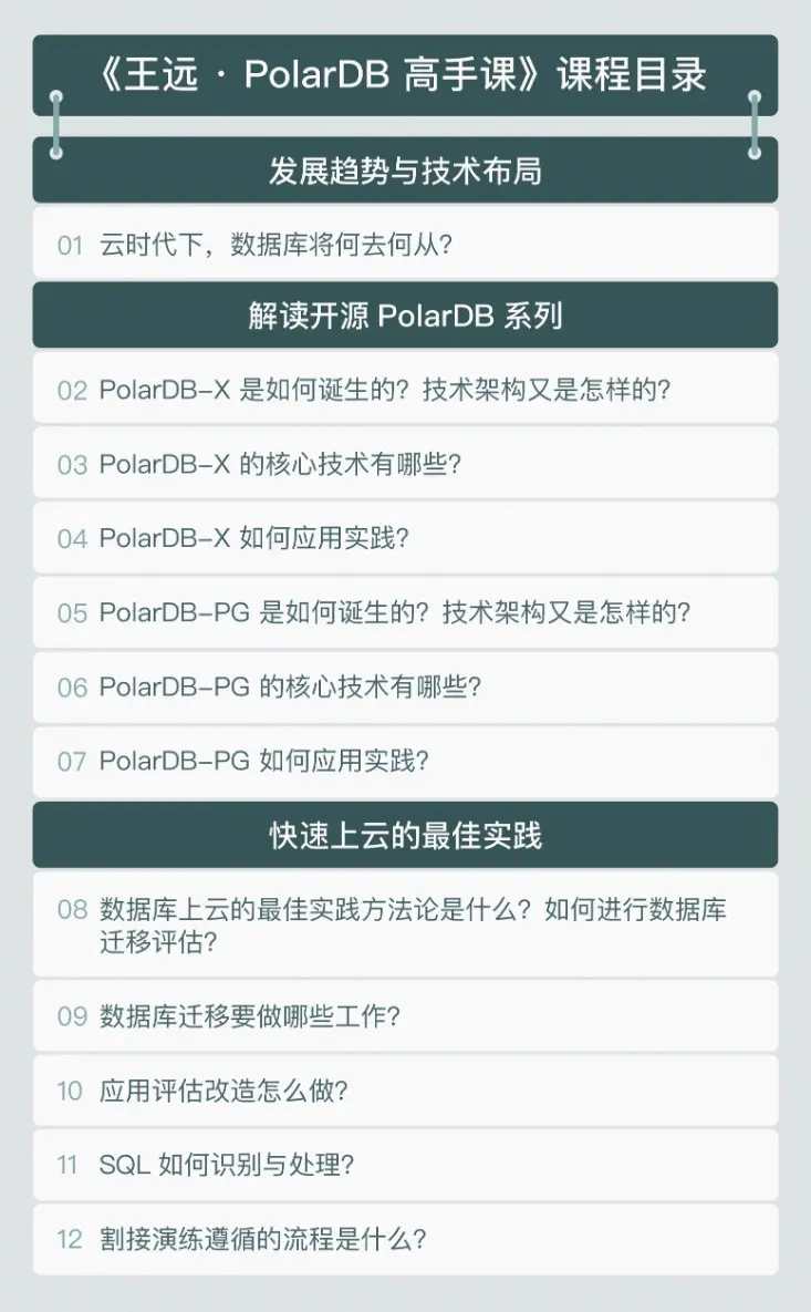 ● 數據庫開發者: 鞏固數據庫系統知識,並希望對雲原生數據庫PolarDB有一個全局的認識,瞭解 PolarDB 的架構設計,進一步瞭解數據庫上雲的最佳實踐方法論;