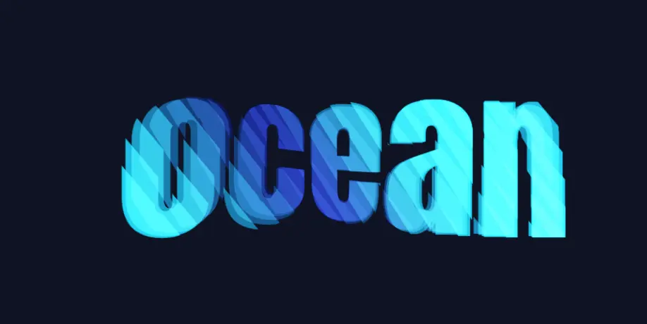 將以上所有部分整合起來,你會看到一個充滿動感的3D文本動畫效果。通過給每個文本塊設置不同的裁剪形狀和動畫延遲,營造出一種波浪般的視覺流動感。文本的顏色在動畫過程中從深藍色變為亮藍色,增加了視覺層次和吸引力。