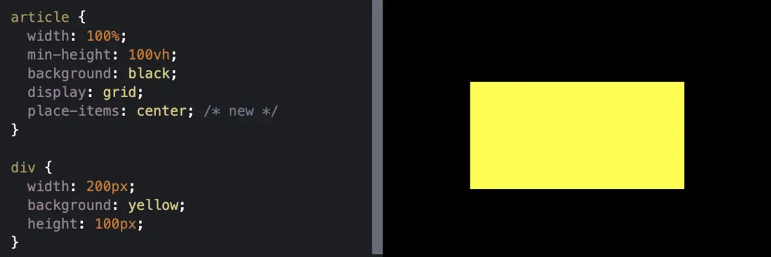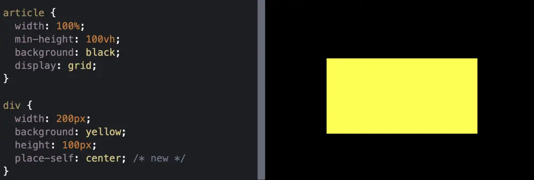 place-self屬性提供了一種簡單的方法來水平和垂直居中網格項。它用於將網格項置於其網格單元格的中心。