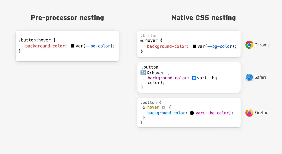 讓我們來看看原生CSS嵌套在Chrome、Safari和Firefox中是如何呈現的。