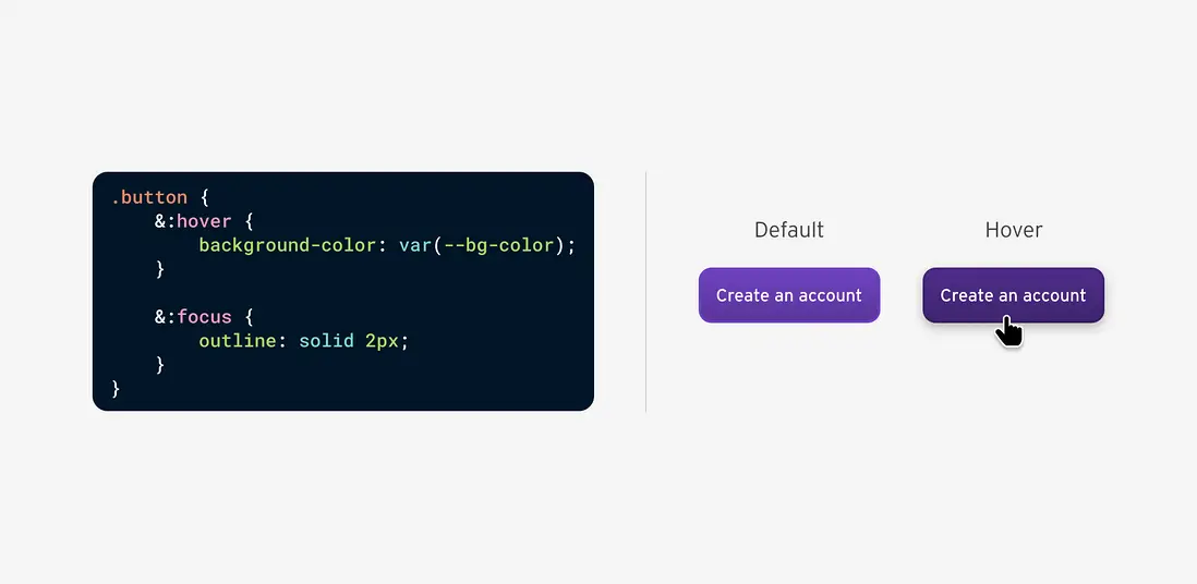使用CSS嵌套,可以一次嵌套它們以避免代碼重複。讓我們以:hover為例:
