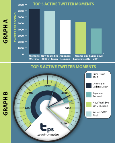 A more useful graphic would provide more context to the events that these numbers describe. What made the Women’s World Cup Final so much more exciting than Super Bowl 2011? Which final was it? Was it really more exciting? When were these measurements taken? Are they the peaks of each event or is it a mix? Were there more tweets because there were more Twitter users at the time? Was it because the time of the day each thing happened? Tell people something — anything — more about the data.