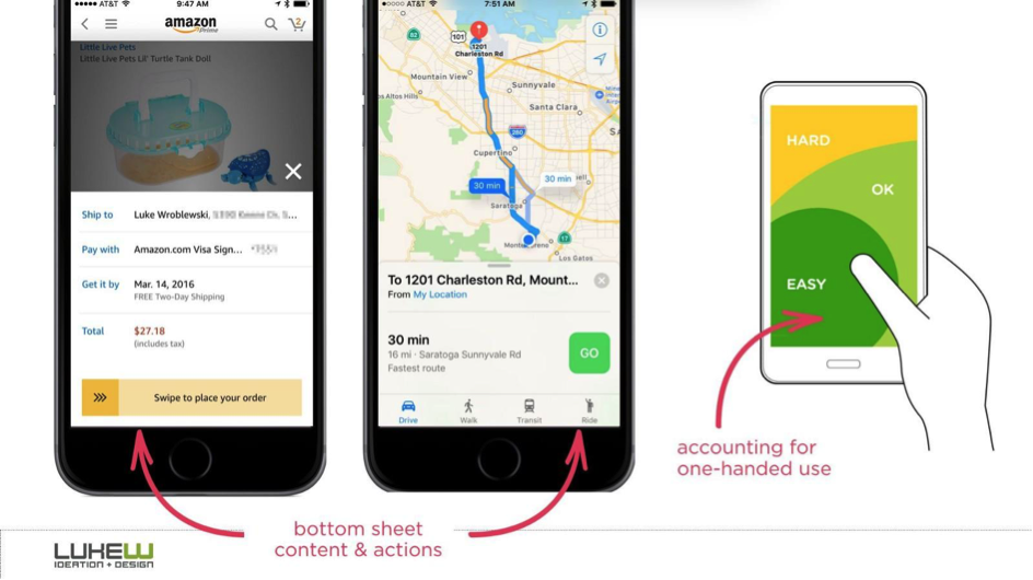 People are shifting to larger-screen phones. Large smartphones don’t surprise anyone anymore. But the bigger the display is, the less easily accessible most of the screen is, and the more necessary it is to adapt the design (and navigation, in particular) to improve the user experience.