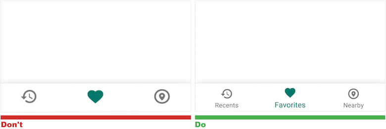 - If an icon fails the five-second rule (i.e. isn’t self-evident), it needs a text label. It’s pretty rare in the offline world that we rely on iconography alone to represent ideas — and for good reason. Due to the absence of a standard usage for most icons, text labels are necessary to communicate meaning and reduce ambiguity. Users should understand what exactly will happen before they tap on an element.