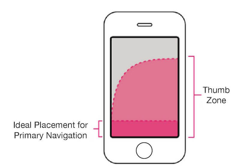 - With a thumb zone, the bottom navigation is easier to reach with the thumb when the device is held in one hand.