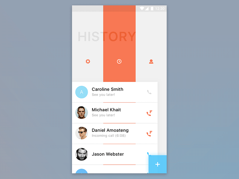 The second solution is a concept for a calling app that applies one-handed navigation principles. The method feels good for calling and messaging apps because users tend to use one hand for dialing and texting.