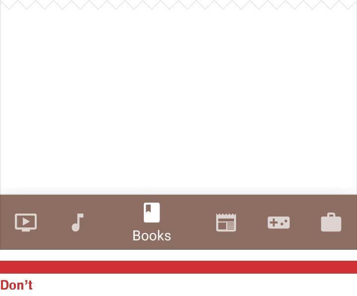 - The navigation options are limited. If your app has more than five options, then fitting them in a tab or navigation bar and still keeping an optimum touch-target size would be hard.