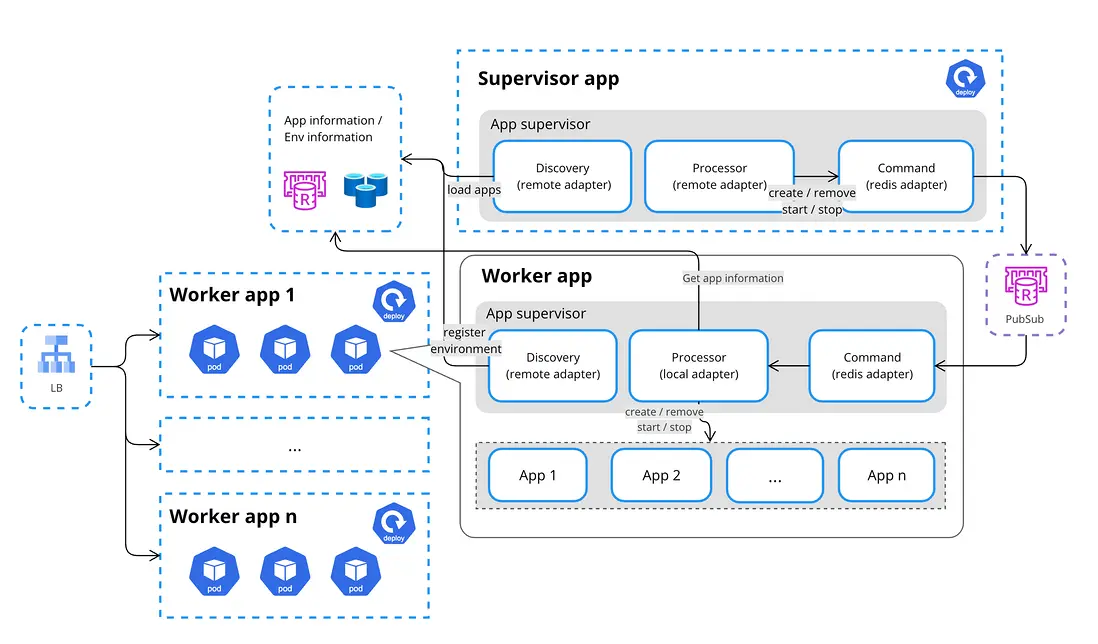 - 多環境混合部署:部署一個 NocoBase 作為統一的管理中心,同時部署多個 NocoBase 作為應用運行環境,用於實際運行業務應用,不同應用可以運行在不同節點或集羣。