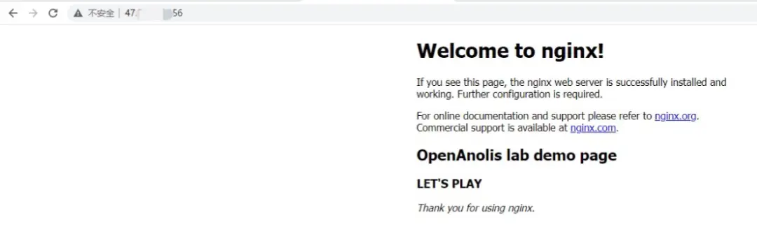 最後,在瀏覽器中以實例 IP 即可訪問 nginx 服務器主頁(開放 80 端口情況下)。