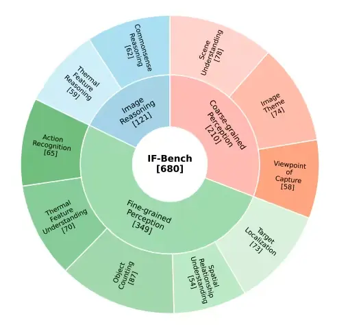 IF-Bench 是一個面向紅外圖像理解的多模態評測基準,用於評估多模態大語言模型對紅外圖像語義信息的理解能力。數據集包含 499 張紅外圖像和 680 組視覺問答對,圖像來自 23 個紅外數據集,覆蓋 10 個關鍵理解維度。所有問題提供中英文雙語版本,適合用於紅外圖像語義理解與多模態推理評測。