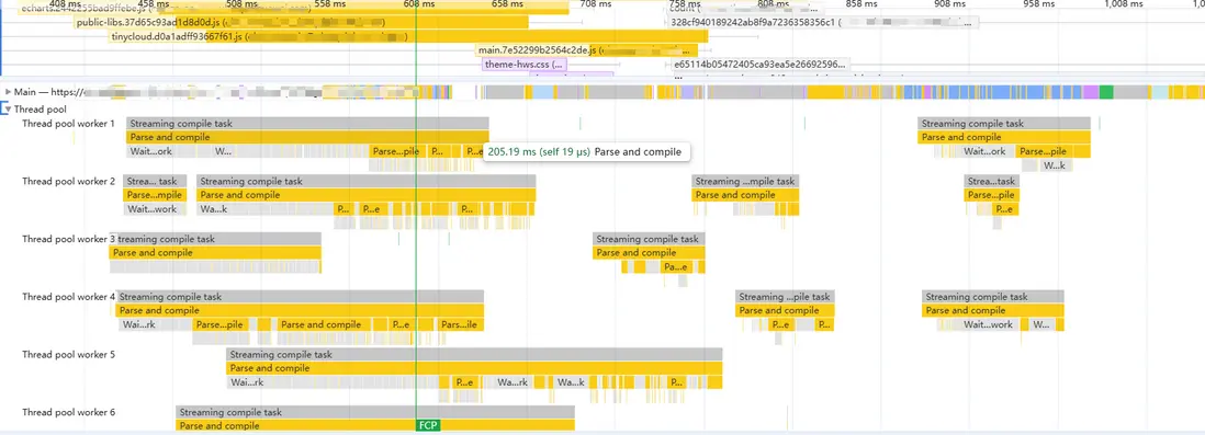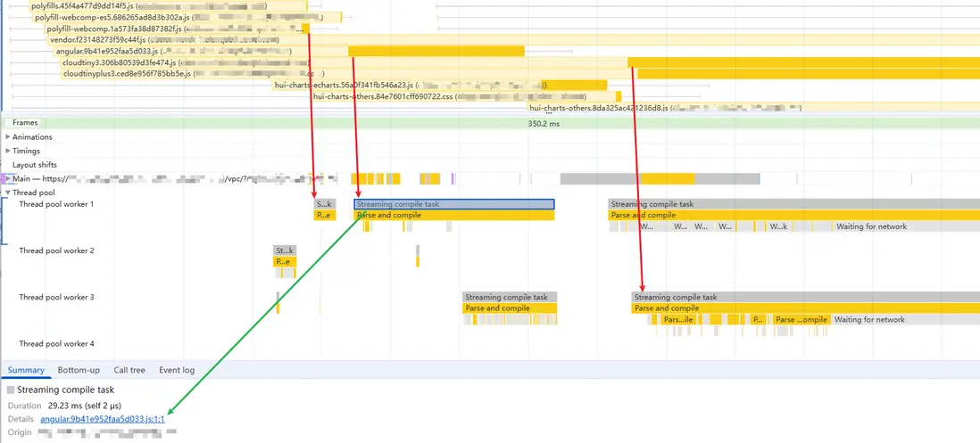 通過網絡請求,瀏覽器拿到的是字符串形態的代碼,它們需要被解析、編譯之後才能執行。前面介紹Thread pool面板時提到過,worker線程一般用於執行耗時、計算密集型且可以並行化的後台任務。而網絡請求結果的解析和編譯,正好適合放在worker中進行。