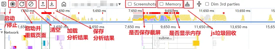 1. 啓動/停止:點一下啓動performance錄製,然後到頁面上做特定操作,再點一下結束。