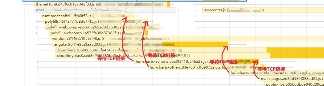 頁面初始化時往往會有大量請求要發出去,這就導致請求往往會卡在第1個階段 Queuing and connecting。