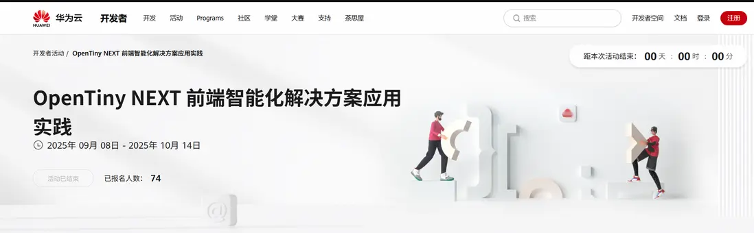 聯合開發者聯盟上線OpenTiny產品體驗官活動,讓線上開發者體驗項目當前的智能化能力。共引導74位開發者報名參與