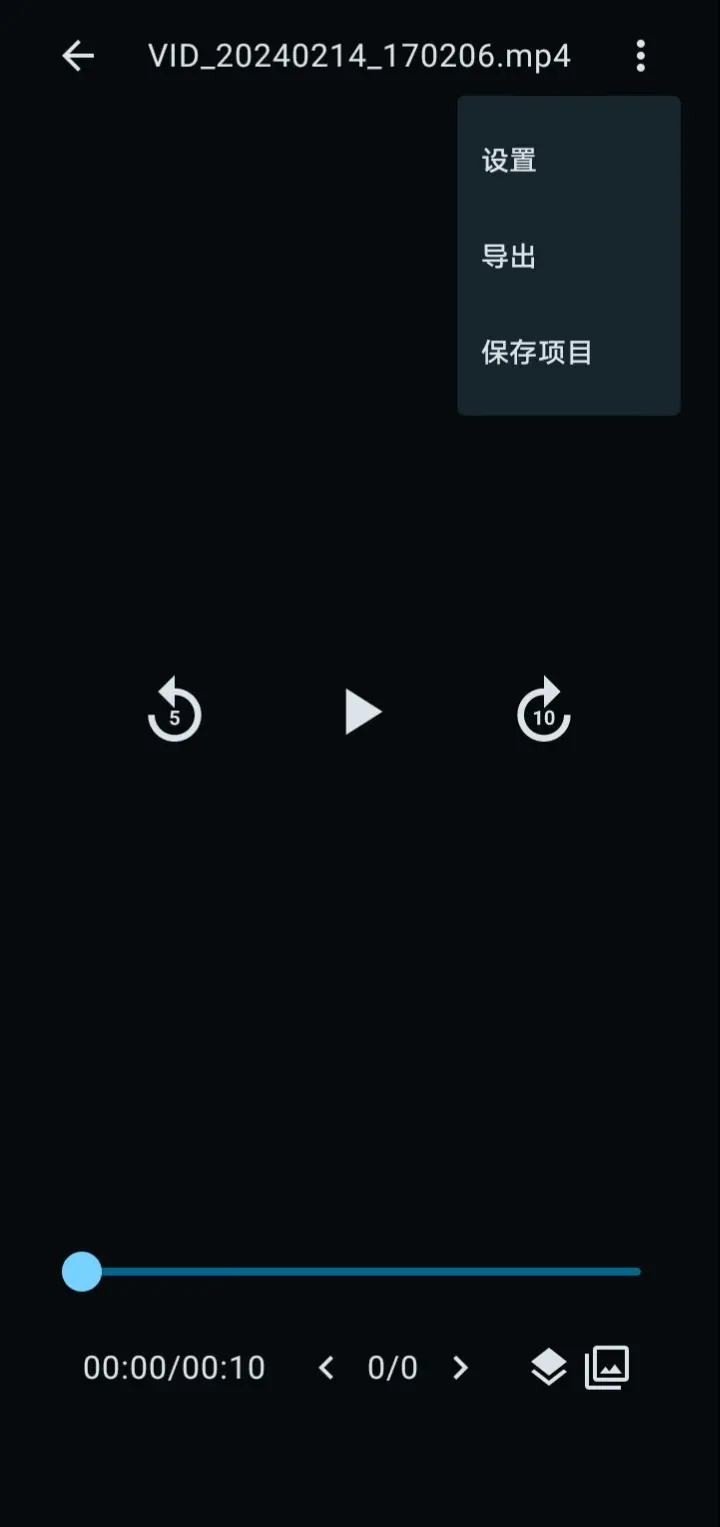 分別拖動兩個圓珠確定裁剪的起止時間後,點擊右下角的打勾按鈕,此時進度條長度變為視頻片段的持續時間比如10秒。點擊界面右上角的三點按鈕,彈出操作菜單列表如下圖所示: