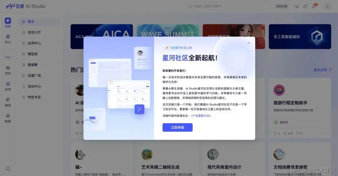 點擊立即體驗,進入全新版本飛槳星河社區。