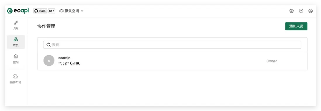 我們在這個版本引入了空間的概念,一個空間一般是一個團隊,我們可以往空間裏添加隊友: