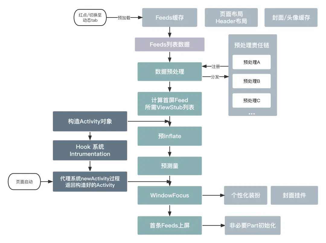 我們將首屏啓動前,會根據緩存提前計算需要的佈局,實現佈局異步預加載。同時,為了保證 Context 的正確性,我們 Hook 了 Activity 的啓動流程,提前準備好空的 Activity 對象用於異步 inflate,並在啓動後綁定真實的 Context。