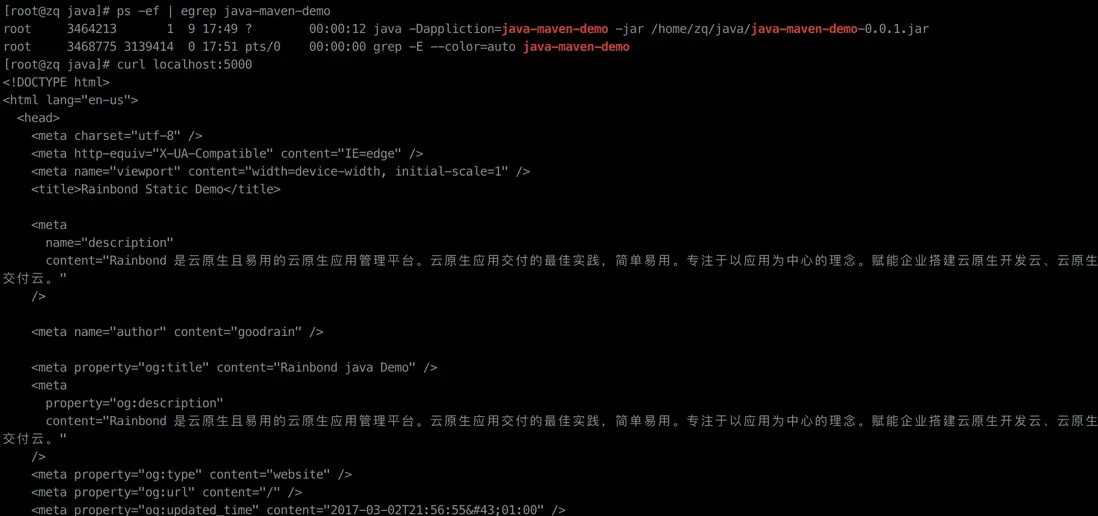 nohup java -Dappliction=java-maven-demo -jar /home/zq/java/java-maven-demo-0.0.1.jar > /dev/null 2>&1 &