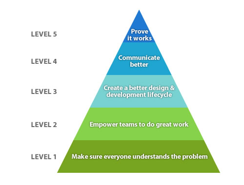 There are no shortcuts to breaking down silos. You can’t fix the environment if the organization doesn’t understand the problem. You can’t improve the development process if the right environment doesn’t exist to enable healthy guidelines. You have to climb the pyramid brick by brick to the ultimate goal: better software through true collaboration.