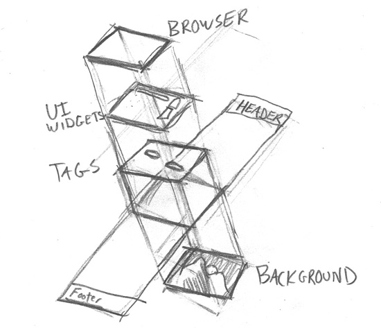 The tag layer and the UI layer is just HTML and CSS, but the background is either an HTML5 canvas that we draw to or it’s Flash. There’s about a 20-millisecond lag between the frames moving and the background changing in Flash, so the canvas version became the primary method used for browsers that support it.