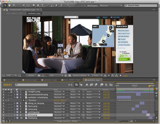 Shift’s first idea was to use video as a background, with the camera descending through some of New Zealand’s most exciting locations. The problem was bandwidth: at 25 frames per second, Shift would need to deliver thousands of full-screen frames. This was an impossible goal, so instead the team set a target of around 200 frames for the entire website. But 200 frames for the amount of footage they wanted worked out to about three frames per second, which doesn’t look particularly good.
