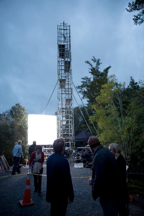 Each location took three days to shoot. The first day was spent building the tower and putting together the motion-control rig. The second day was usually spent rehearsing the scene, and the third would be for the actual shoot, which included multiple passes of the scene. Indeed, the scene for Waiheke Island is a combination of two takes.