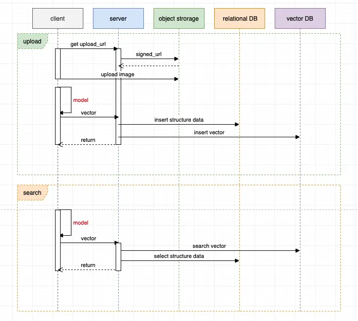 - 服務端發起調用並將圖像傳遞到圖像搜索服務,圖像搜索服務提取圖像特徵向量,然後查詢向量數據庫進行相似性搜索,最後返回向量搜索結果。