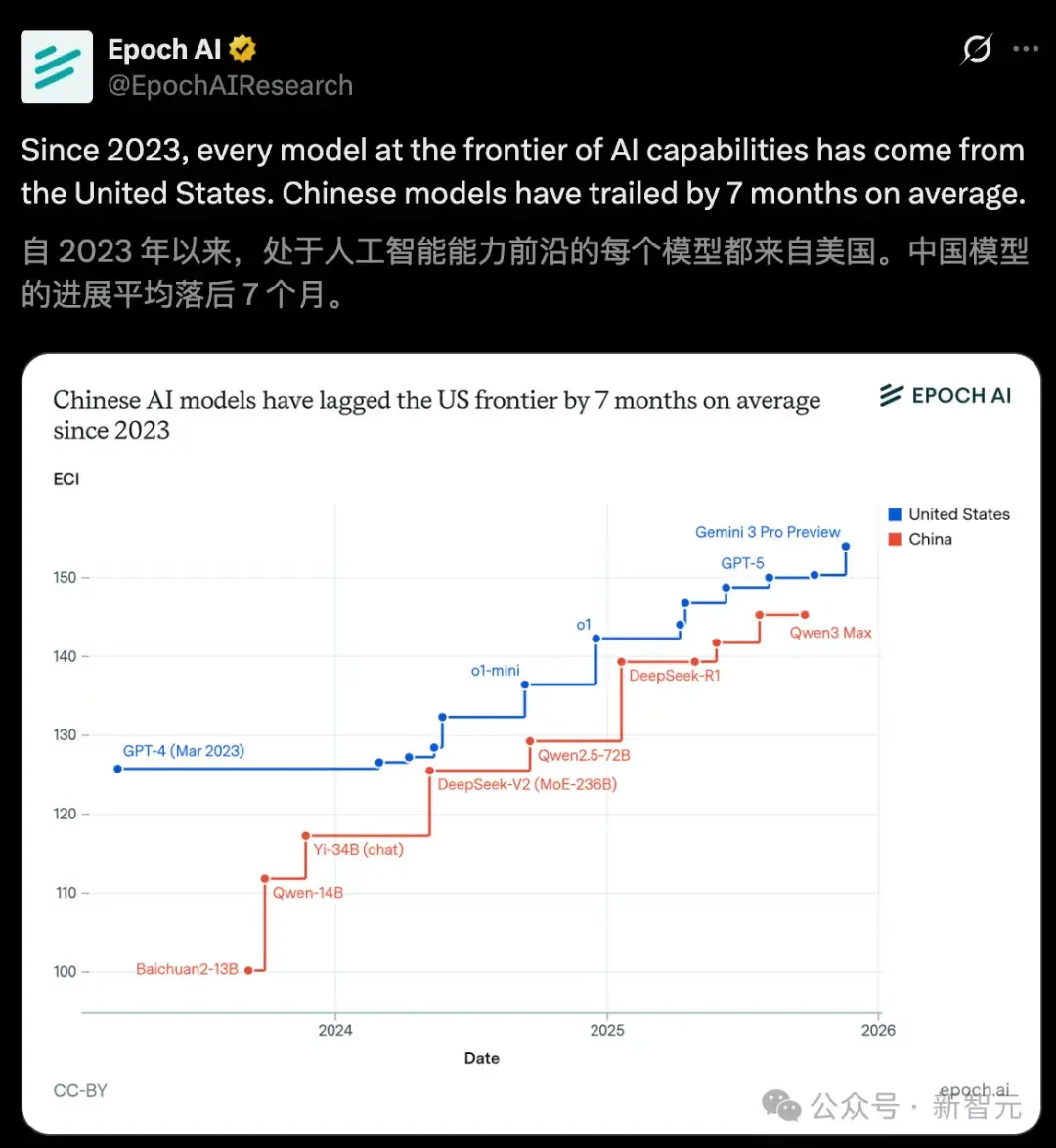 1、Epoch AI 新報告:中國平均落後 7 個月,最小差距 4 個月