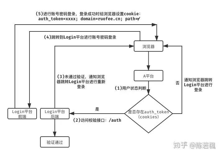 以上就是平台登錄的大致流程,可以看出,平台如果想接入統一登錄服務,關鍵的點在於A平台前端在訪問A平台後端時,是否可以自動帶上Login平台設置的cookie(auth_token),從而進行後面的auth_token校驗流程。