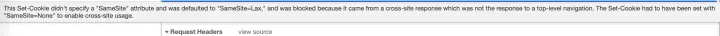 當Set-Cookie中的”SameSite“沒有設置值時,默認為”SameSite=Lax“,並且因為Set-Cookie來自於一個跨站點的響應,導致Set-Cookie被阻攔。如果需要跨站點設置cookie,Set-Cookie必須設置為”SameSite=None“。