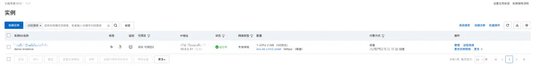 在阿里雲控制枱檢查 ECS 實例,我們可以看到 ECS 實例已成功創建。