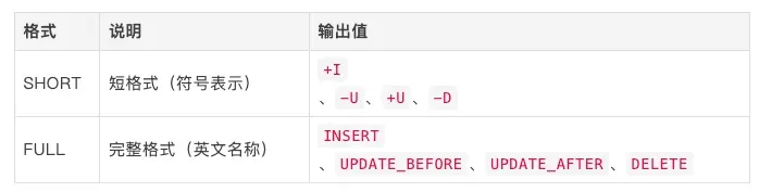 指定 RowKind 字段值的輸出格式。