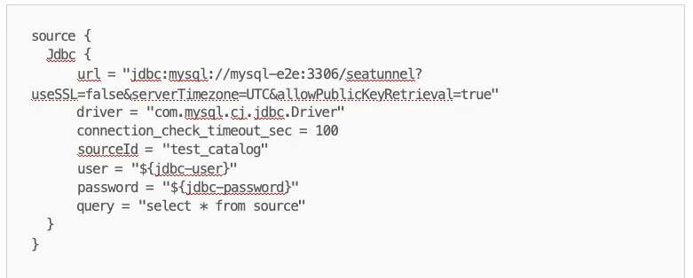 - 如果啓用metalake且sourceId存在,則用户可將username和password等字段並設為佔位符,然 後通過metalake接口查詢數據源信息並佔位符替換。