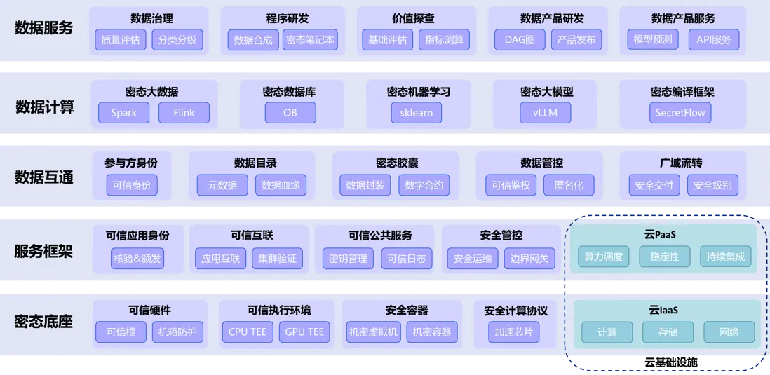 密態數據互通層提供數據的全生命週期流通能力,包括數據的封裝、授權、鑑權等,重點保障數據在流通過程中不被竊取和濫用。