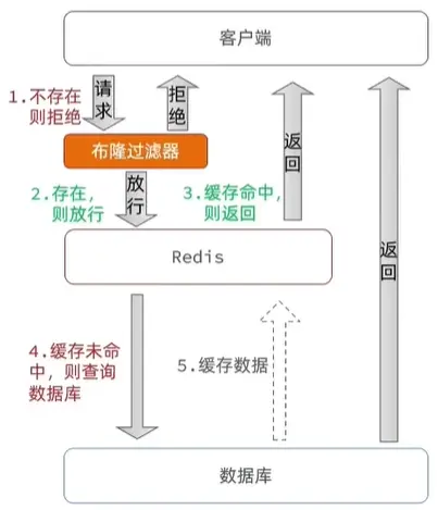 • 在寫入數據時,使用布隆過濾器進行標記(相當於設置白名單),業務請求發現緩存中無對應數據時,可先通過查詢布隆過濾器判斷數據是否在白名單內(布隆過濾器可以判斷數據一定不存在),如果不在白名單內,則直接返回空或失敗。