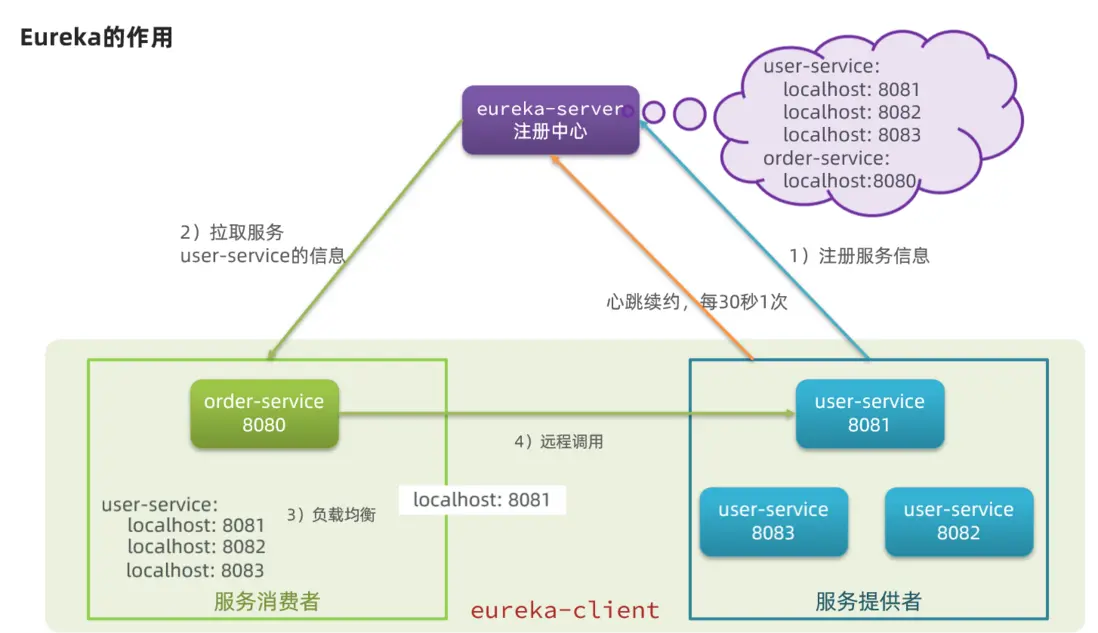 • Eureka: 服務治理組件, 包含服務註冊中心、服務註冊與發現機制的實現。