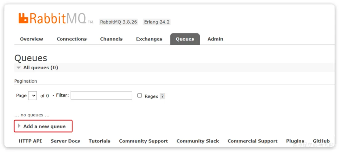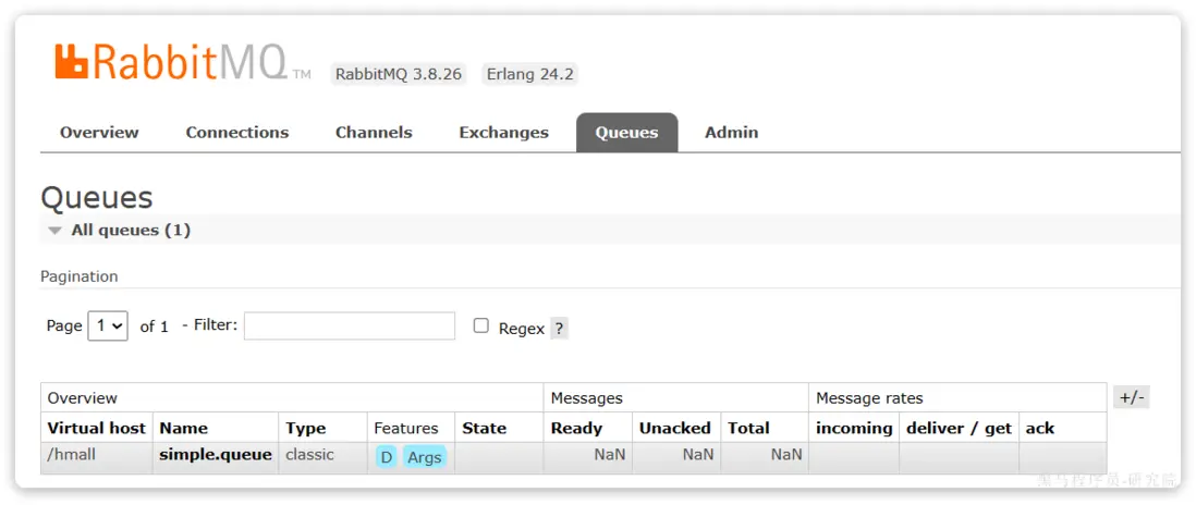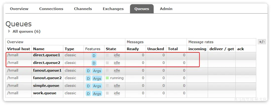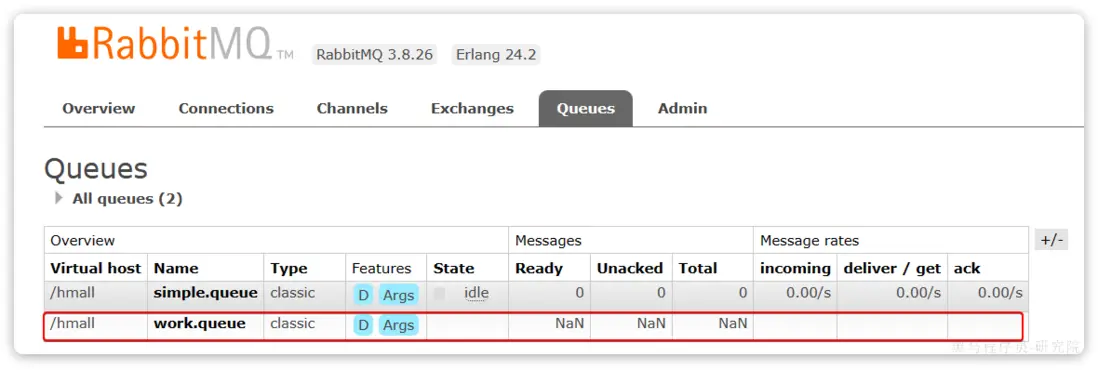 然後再次查看queues選項卡,會發現之前的隊列已經看不到了: