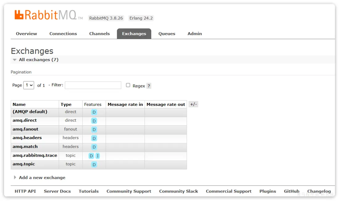 這裏是由控制枱模擬了生產者發送的消息。由於沒有消費者存在,最終消息丟失了,這樣説明交換機沒有存儲消息的能力。