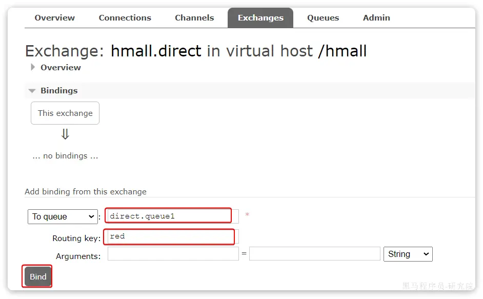 public Binding bindingQueue1WithRed(Queue directQueue1, DirectExchange directExchange){