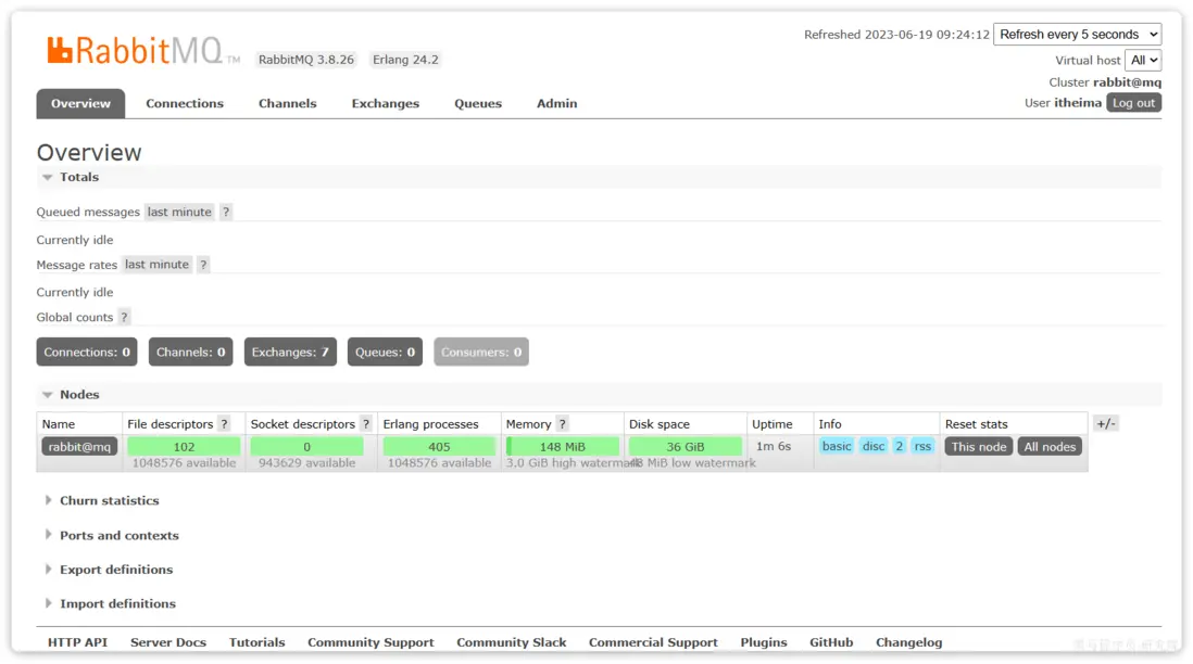 • Management Plugin: RabbitMQ 管理插件提供了一個 Web 管理界面,用於監控和管理 RabbitMQ 服務器。可以查看隊列、交換機、連接、通道等的狀態,並進行配置和操作。