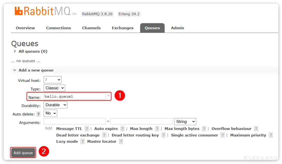再以相同的方式,創建一個隊列,密碼為hello.queue2,最終隊列列表如下: