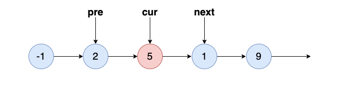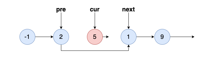 pre.next = cur.next;