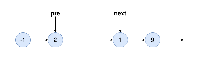 ListNode pre = new ListNode(-1);