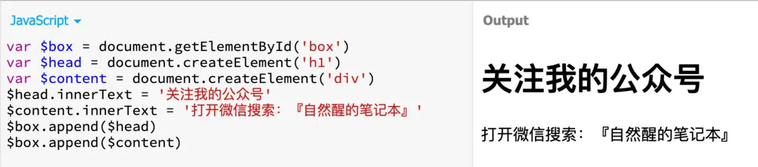 var $head = $('<h1/>', { text: '關注我的公眾號' })